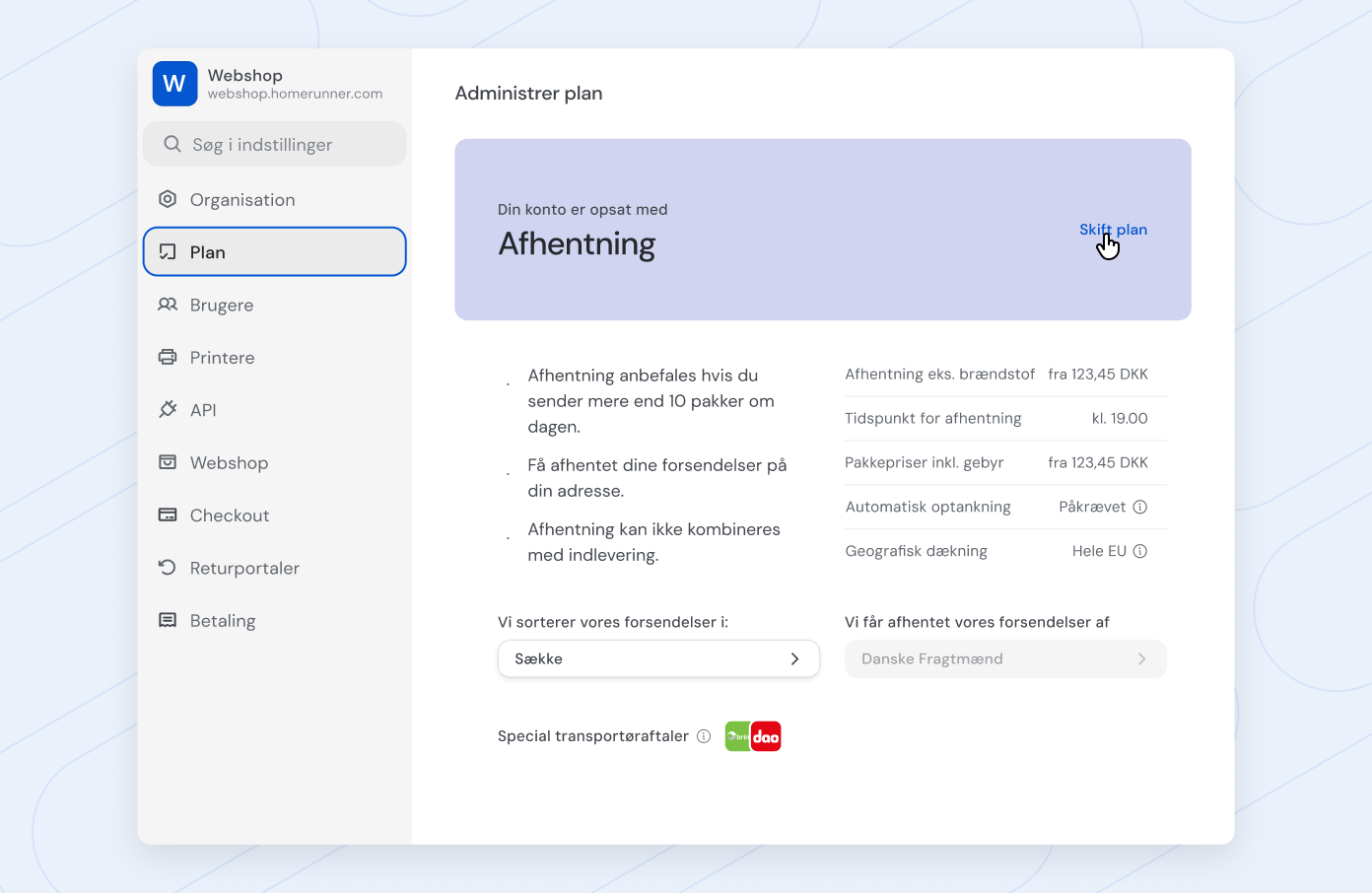 Administrer fragtopsætning, regler og priser i jeres checkout.