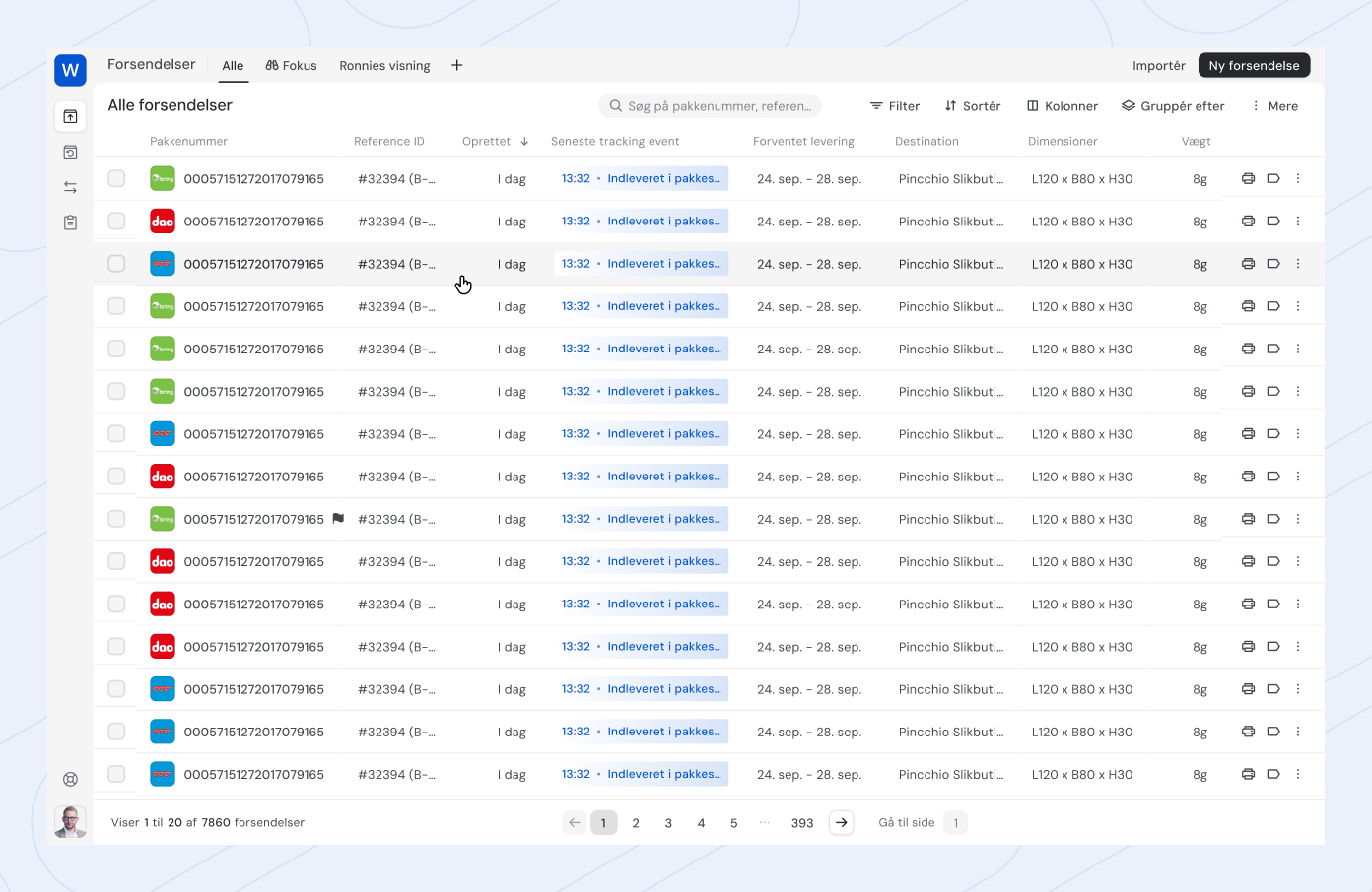 Forsendelser: Se, opret og administrer alle forsendelser.